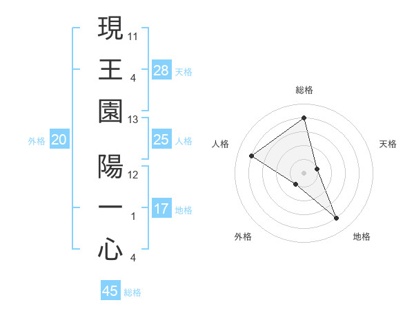 現王園 陽一心さんの外格は20画の1点!