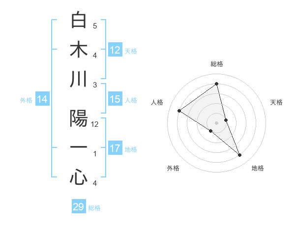 白木川 陽一心さんを姓名の画数から五運を鑑定