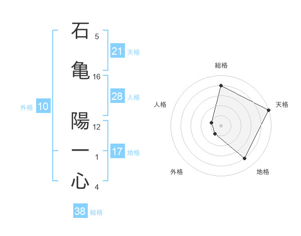 石亀 陽一心さんを姓名の画数から五運を鑑定