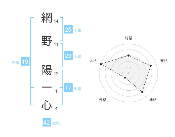 網野 陽一心さんの天格は25画の4点