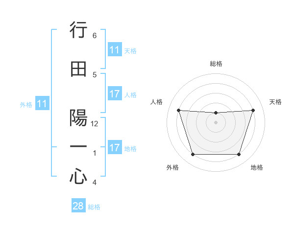 行田 陽一心さんを姓名の画数から五運を鑑定