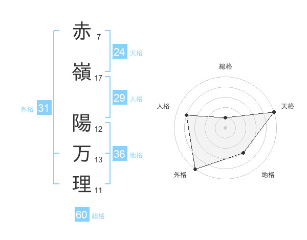 赤嶺 陽万理さんの外格は31画の5点