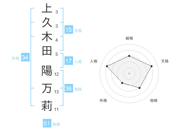 上久木田 陽万莉さんを姓名の画数から五運を鑑定