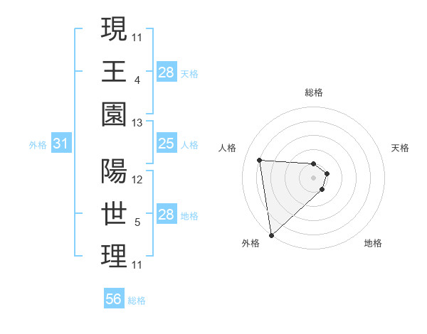 現王園 陽世理さんの外格は31画の5点!