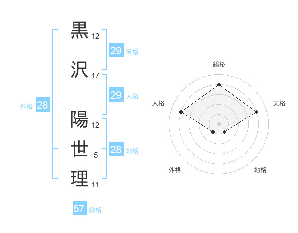 黒沢 陽世理さんの天格は29画の4点!