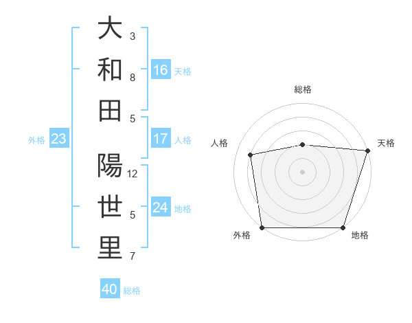 大和田 陽世里さんを姓名の画数から五運を鑑定