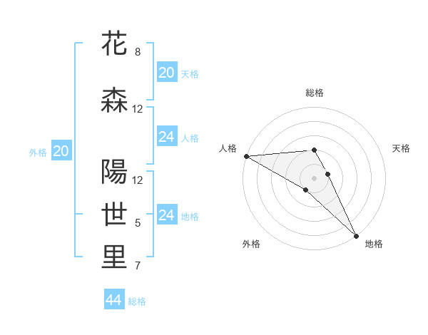 花森 陽世里さんを姓名の画数から五運を鑑定