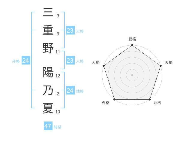 三重野 陽乃夏さんの外格は24画の5点!