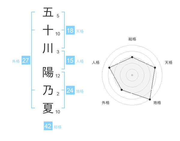五十川 陽乃夏さんを姓名の画数から五運を鑑定