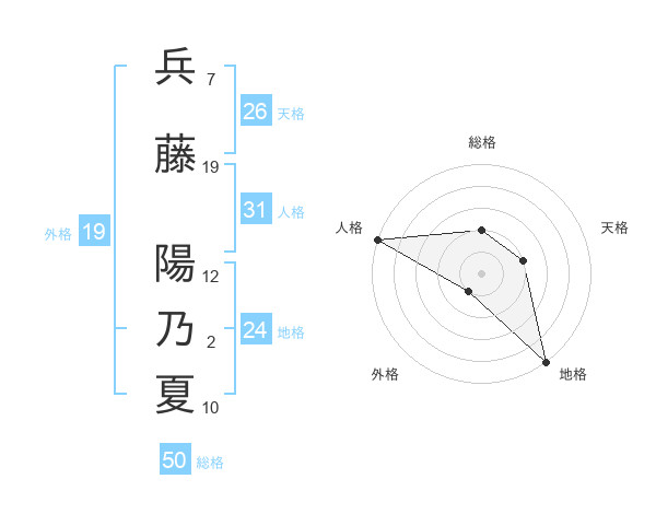 兵藤 陽乃夏さんの人格は31画の5点!