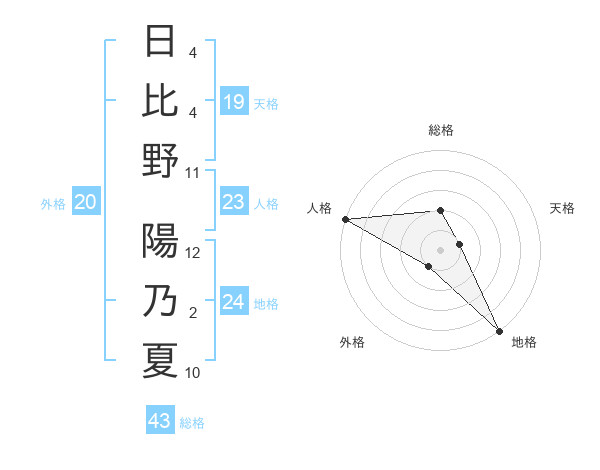 日比野 陽乃夏さんを姓名の画数から五運を鑑定