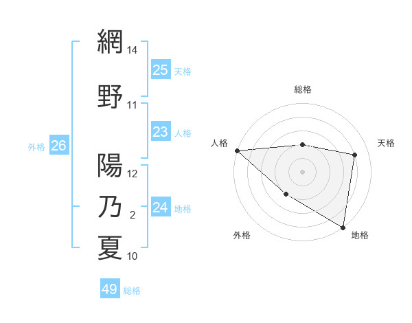 網野 陽乃夏さんを姓名の画数から五運を鑑定