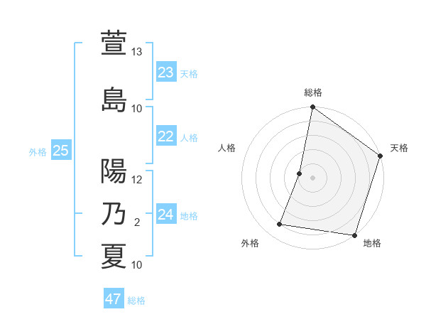 萱島 陽乃夏さんの総格は47画の5点!