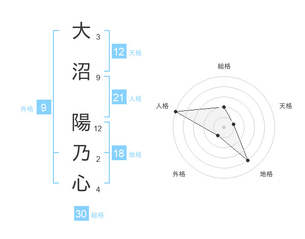 大沼 陽乃心さんを姓名の画数から五運を鑑定