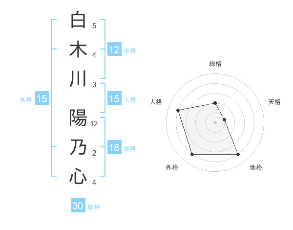 白木川 陽乃心さんを姓名の画数から五運を鑑定