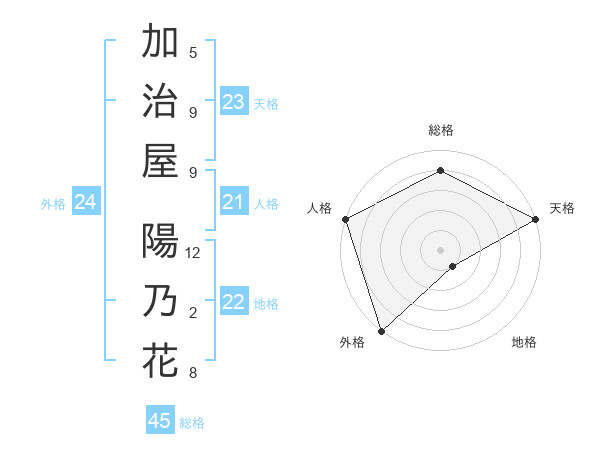 加治屋 陽乃花さんの総格は45画の4点!
