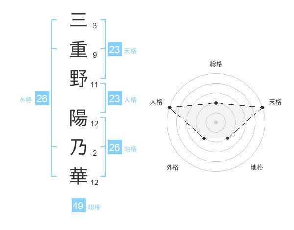 三重野 陽乃華さんを姓名の画数から五運を鑑定