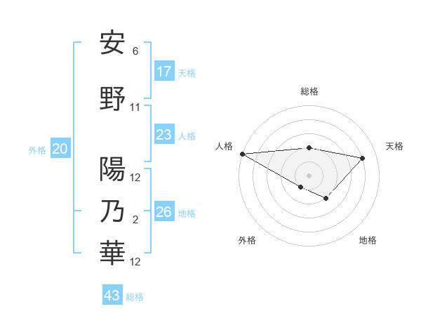 安野 陽乃華さんの天格は17画の4点!