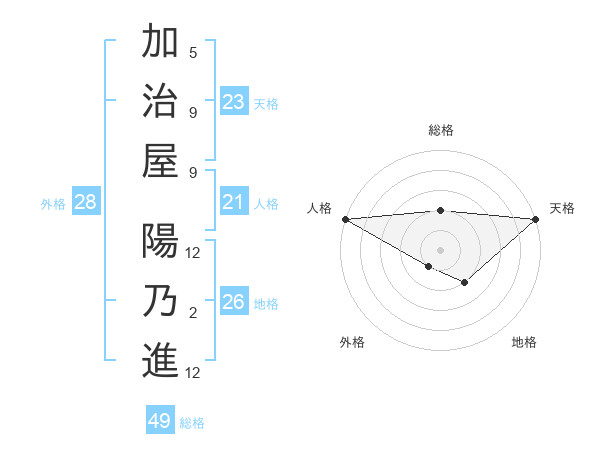 加治屋 陽乃進さんを姓名の画数から五運を鑑定