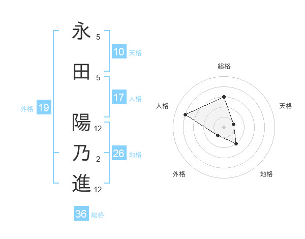 永田 陽乃進さんの総格は36画の3点