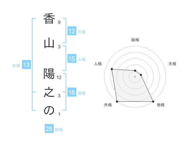 香山 陽之のさんを姓名の画数から五運を鑑定