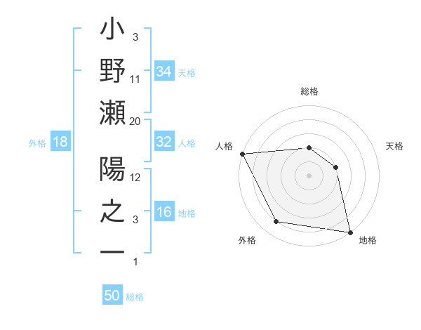 小野瀬 陽之一さんを姓名の画数から五運を鑑定