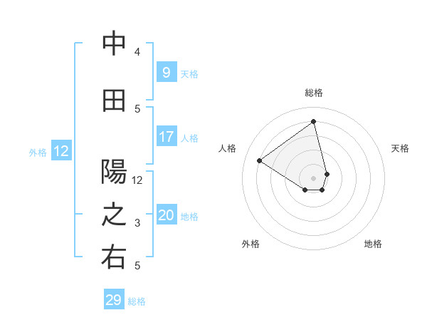 中田 陽之右さんを姓名の画数から五運を鑑定