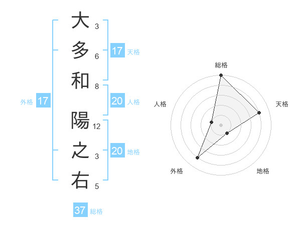 大多和 陽之右さんの総格は37画の5点!