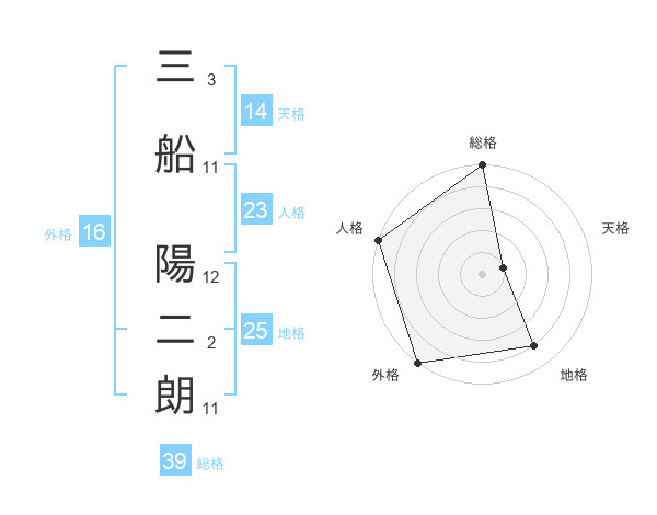 三船 陽二朗さんの外格は16画の5点!