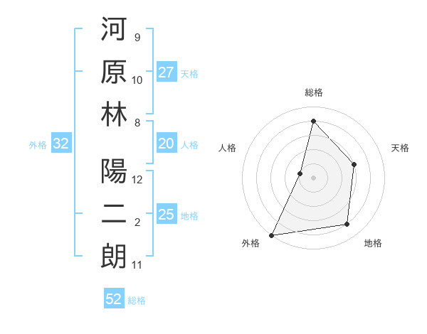 河原林 陽二朗さんを姓名の画数から五運を鑑定