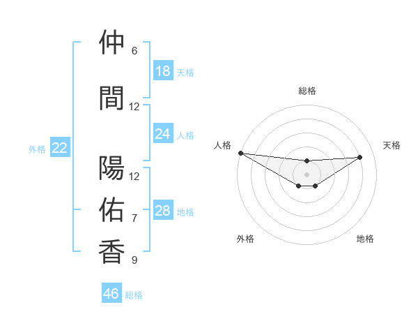 仲間 陽佑香さんを姓名の画数から五運を鑑定