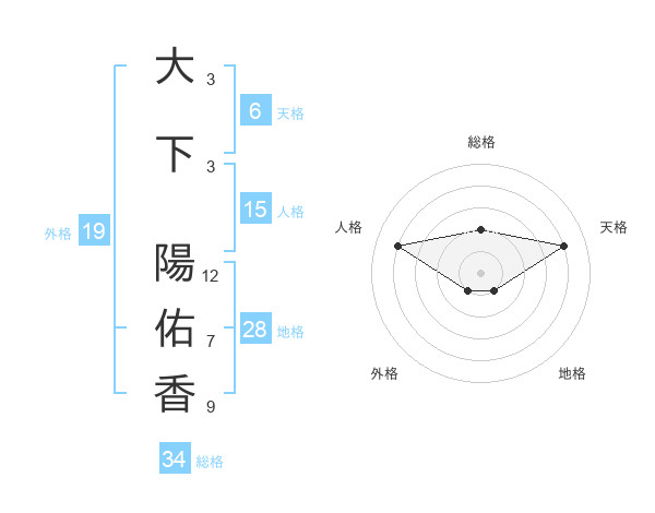 大下 陽佑香さんを姓名の画数から五運を鑑定