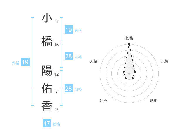 小橋 陽佑香さんの総格は47画の5点!