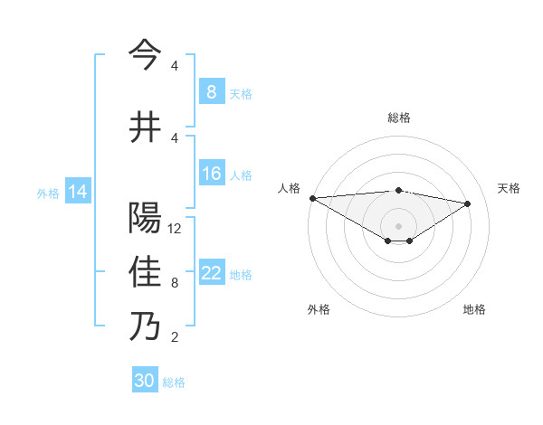 今井 陽佳乃さんを姓名の画数から五運を鑑定