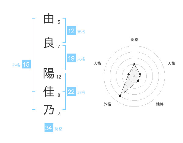 由良 陽佳乃さんを姓名の画数から五運を鑑定