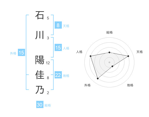 石川 陽佳乃さんを姓名の画数から五運を鑑定