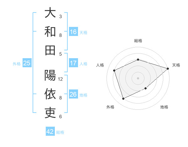 大和田 陽依吏さんの天格は16画の5点!