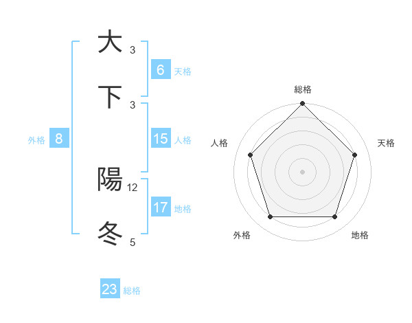 大下 陽冬さんの総格は23画の5点!