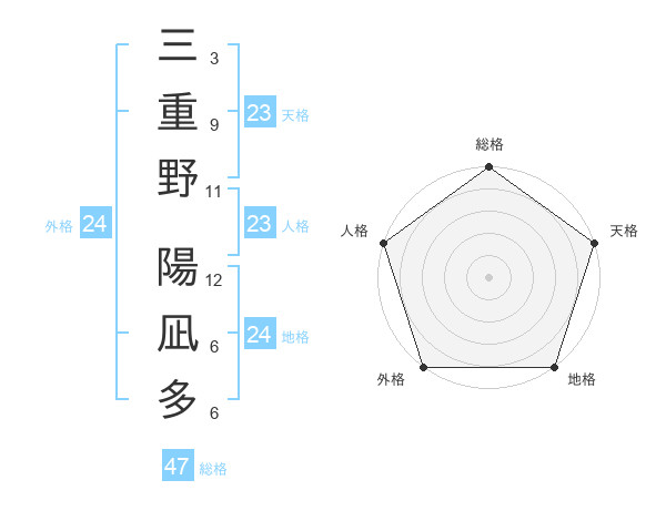 三重野 陽凪多さんの総格は47画の5点!