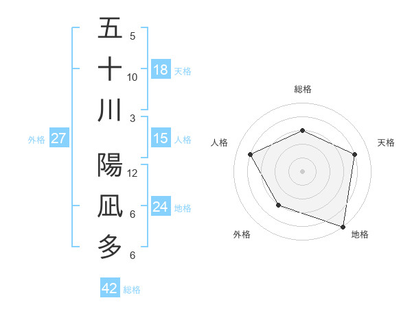 五十川 陽凪多さんを姓名の画数から五運を鑑定