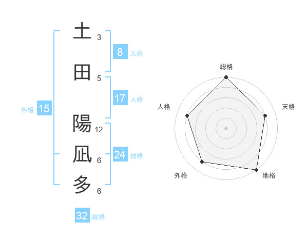 土田 陽凪多さんを姓名の画数から五運を鑑定