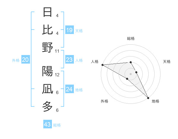 日比野 陽凪多さんを姓名の画数から五運を鑑定