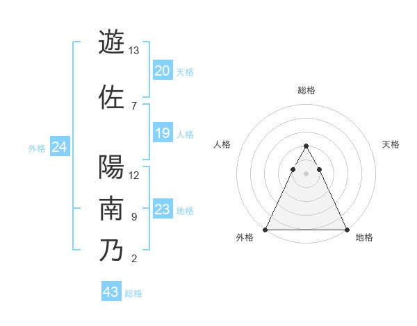遊佐 陽南乃さんの外格は24画の5点!