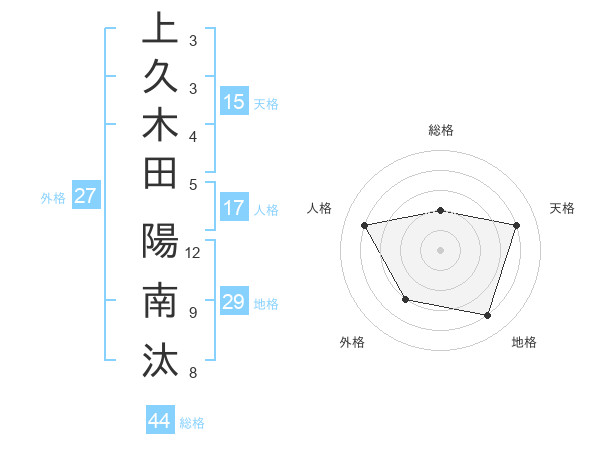 上久木田 陽南汰さんを姓名の画数から五運を鑑定
