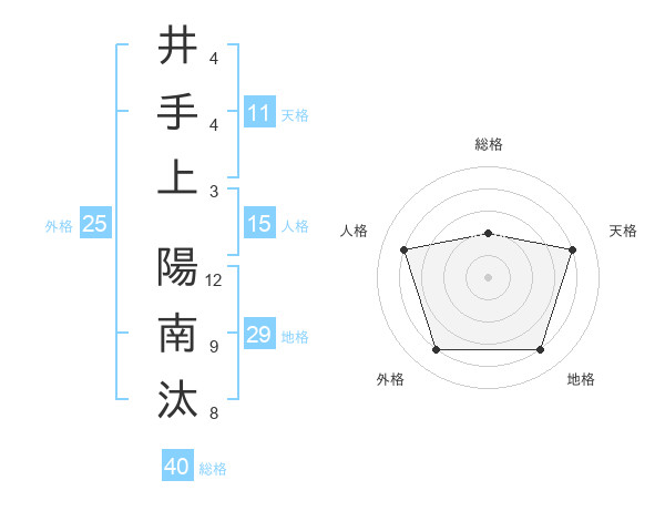 井手上 陽南汰さんを姓名の画数から五運を鑑定
