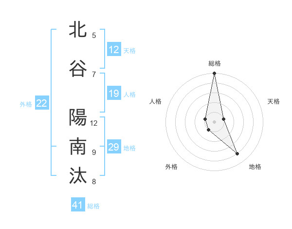北谷 陽南汰さんの地格は29画の4点!