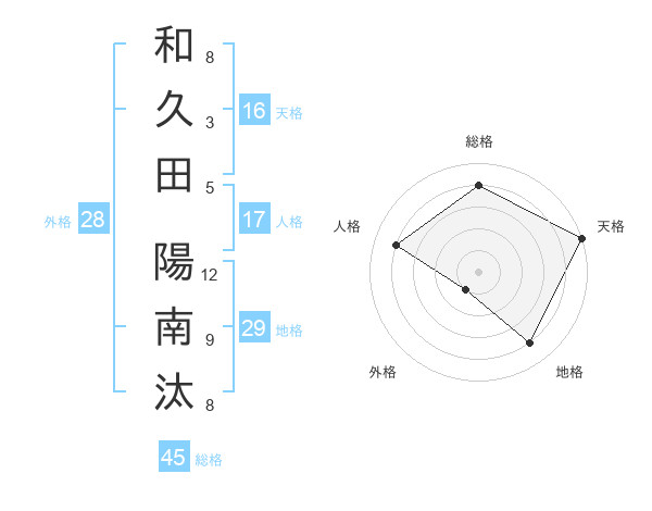 和久田 陽南汰さんを姓名の画数から五運を鑑定
