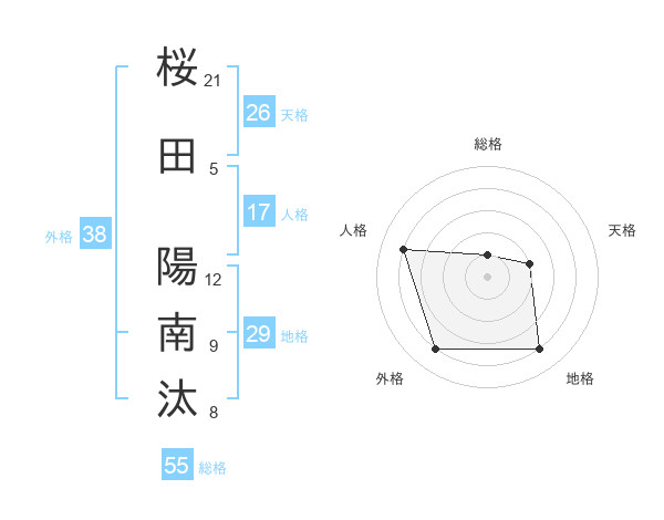 桜田 陽南汰さんを姓名の画数から五運を鑑定
