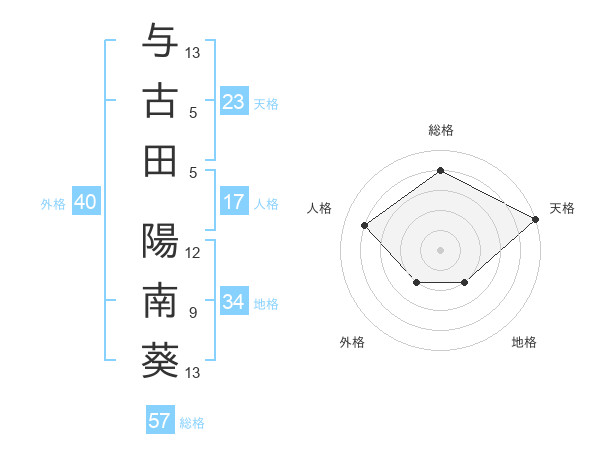 与古田 陽南葵さんの天格は23画の5点