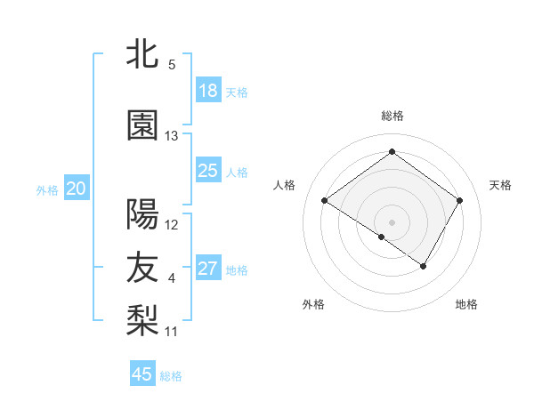 北園 陽友梨さんを姓名の画数から五運を鑑定